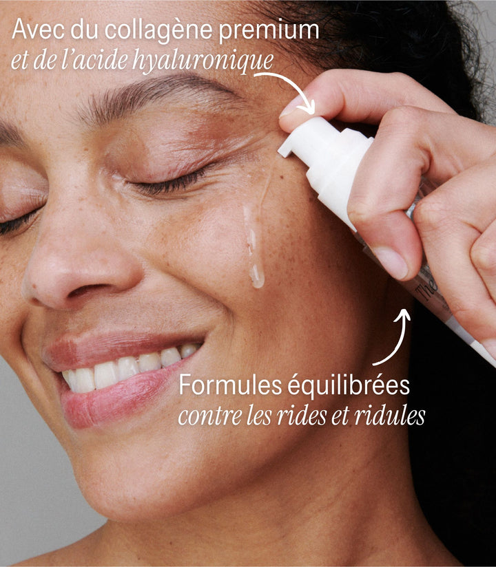 The Serum est un sérum léger à absorption rapide qui hydrate en profondeur, raffermit la peau et atténue les ridules grâce à un mélange d'acide hyaluronique, de collagène et d'ingrédients nourrissants.
